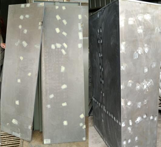 如圖是浦豐柜業(yè)焊接的重型工具柜表面處理過程中的照片。有白點的地方都是厚板焊透后人工打磨凸起的鋼板表面。只有工具柜內加強筋和柜體焊透才能保證固體的牢固性。每個焊點再采取汽車表面修補漆面的工藝,進行人工修補原子灰,再進行表面靜電噴塑處理。